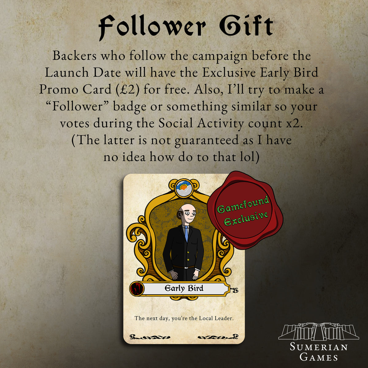 Help the game come to life by following the campaing. By following, you'll receive a promo card for free :)
